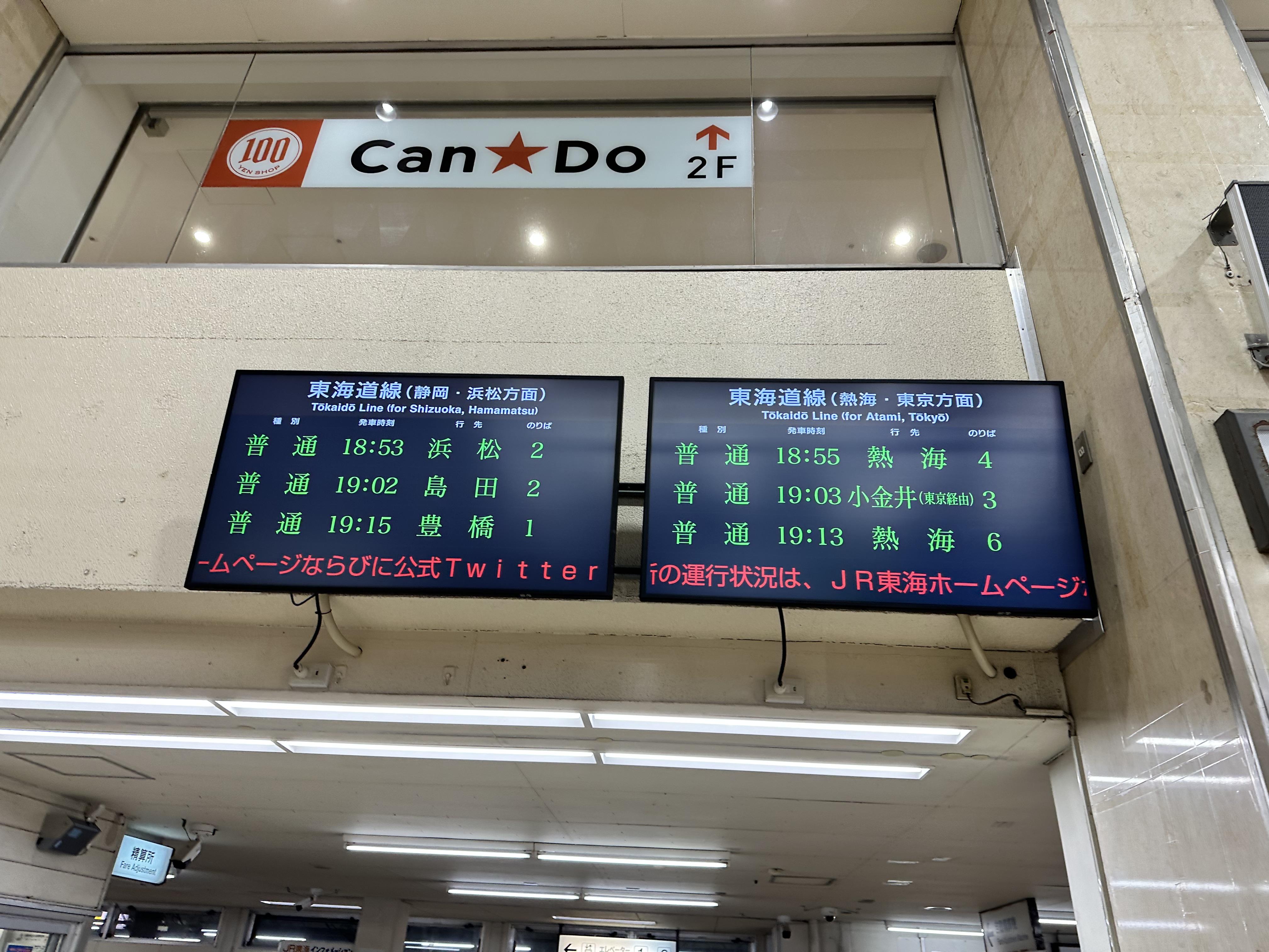아타미 역에서 도카이도선 보통열차로 갈아타고 간다.